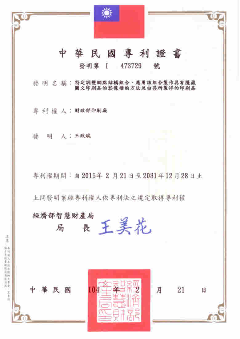 | I473729 | 特定調變網點結構組合、應用該組合製作具有隱藏圖文印刷品的影像檔的方法及由其所製得的印刷品 | ![]() |